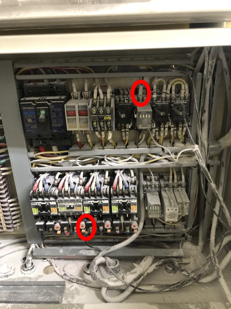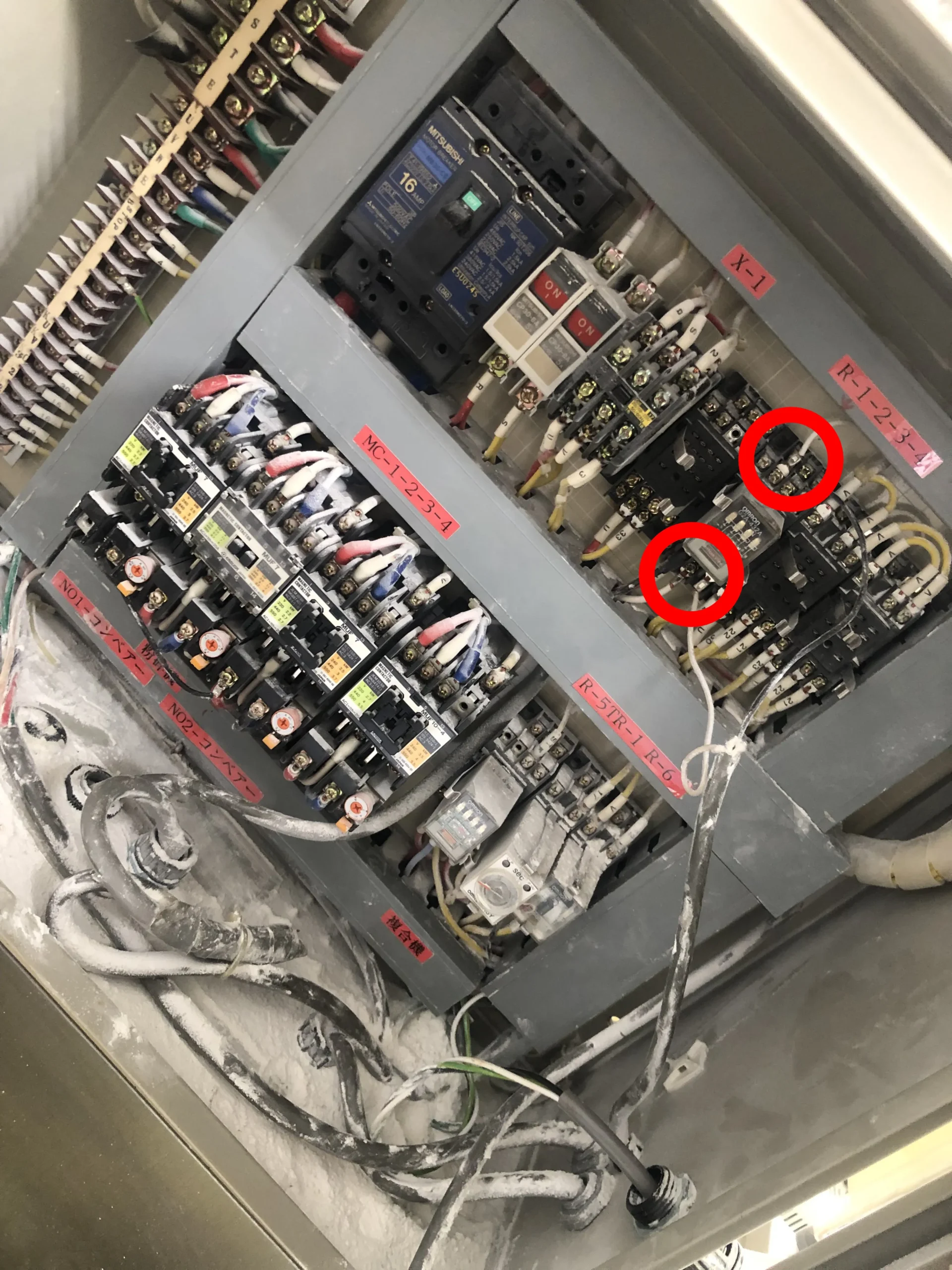 - 既存のリレーを応急処置として、別の接点へ配線変更。