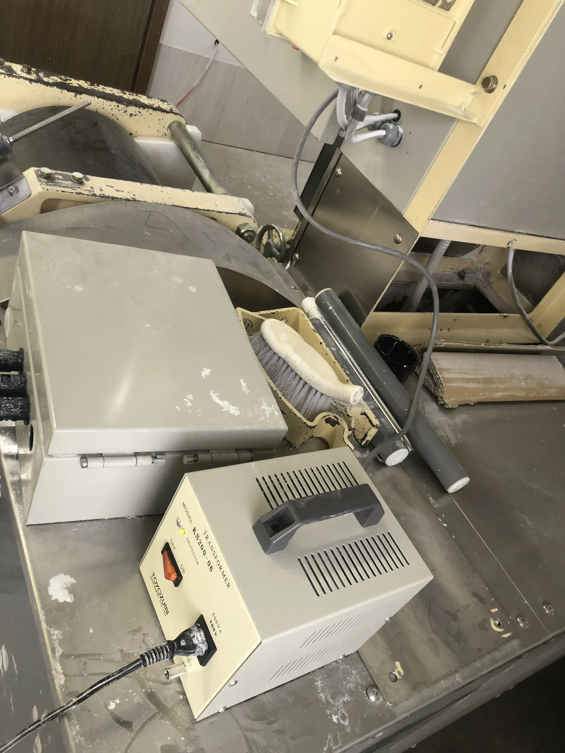 コンベアが動くとトランスの電源が入り、粉振り機が動作。