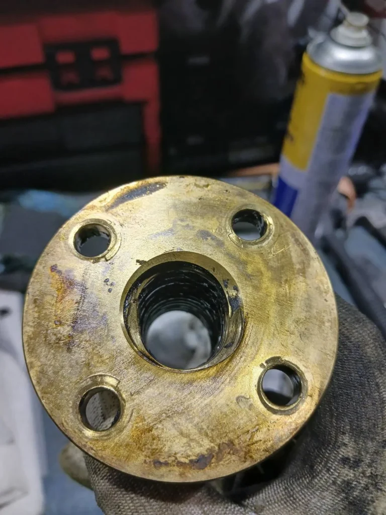 - 自社でバーナー加熱とパイプレンチを使用し、ナットを慎重に取り外し。