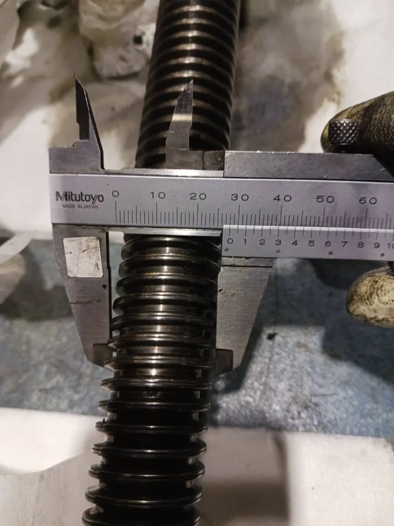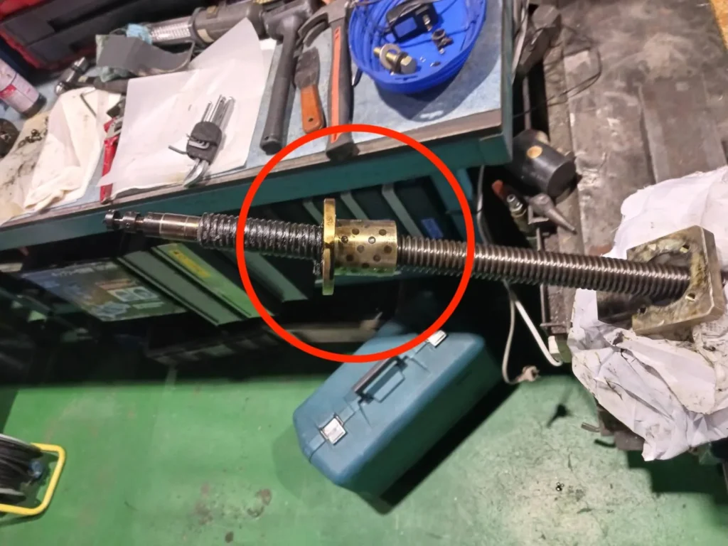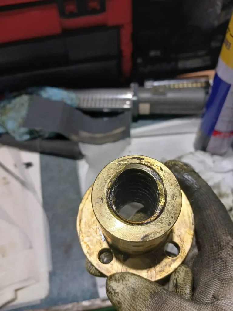 - 摩耗・傾きが確認された台形ネジナットの摘出。