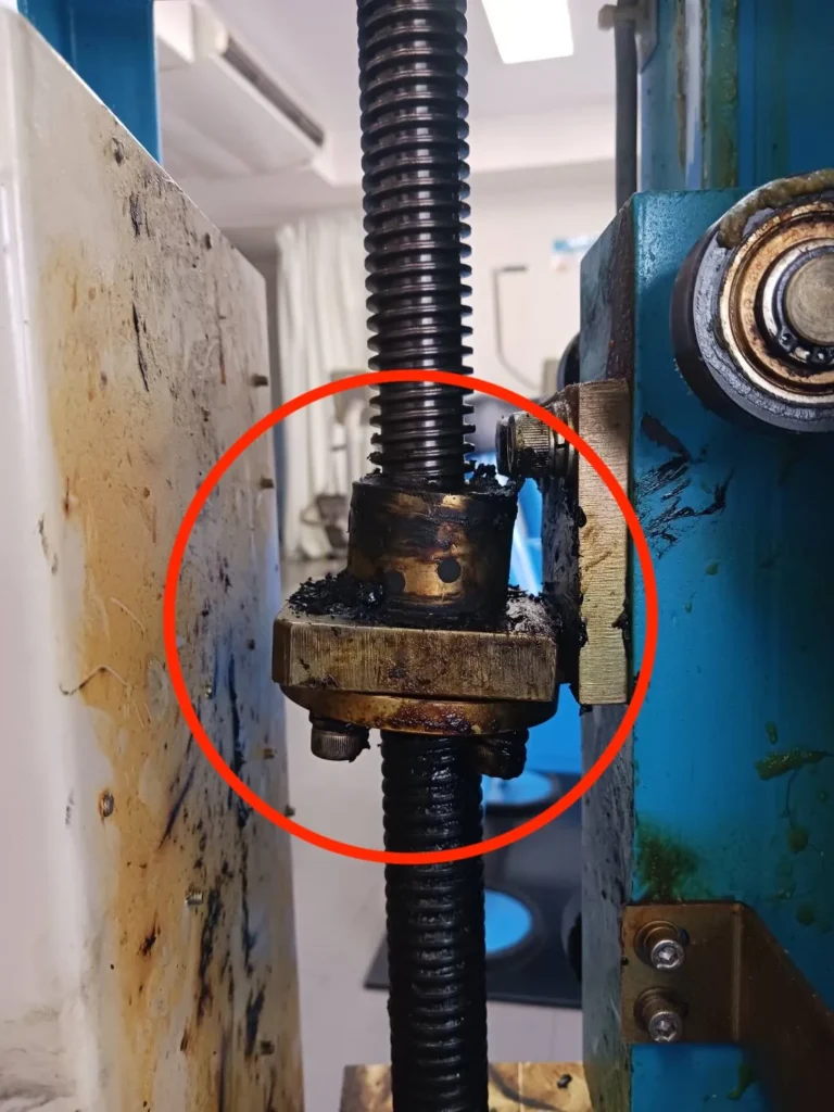 - 固着によりシャフトが回らず、昇降動作が不能に。