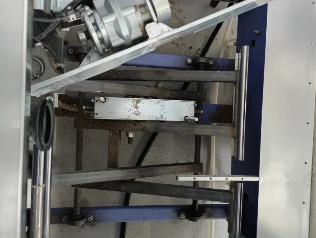 押上げ機構のプレートが曲がり、底部のフラップを十分に押し上げることができず、組み立てた段ボール箱に破れが発生していました。