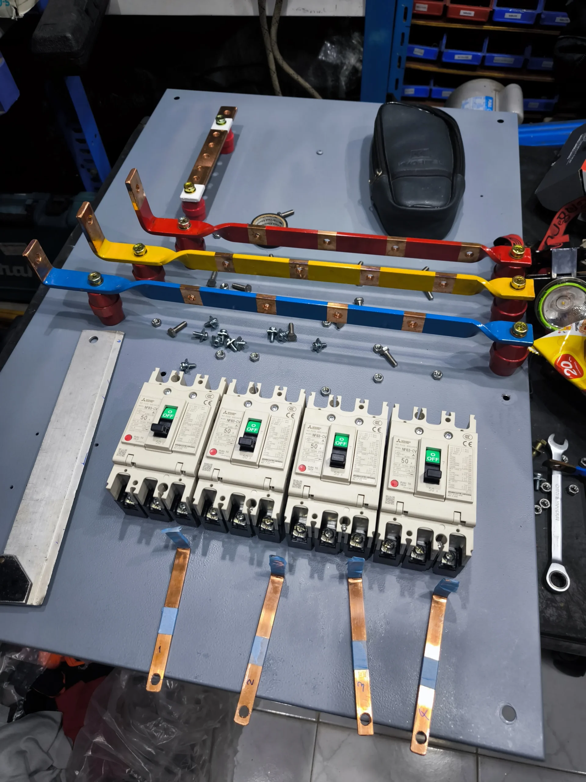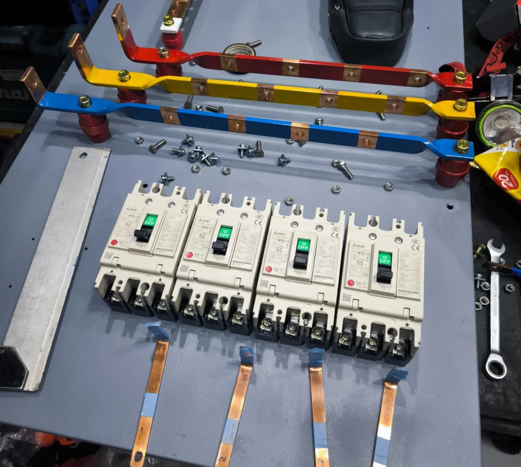 - 破損した部品を取り外し、新しいブレーカーやバスバーを取り付け。