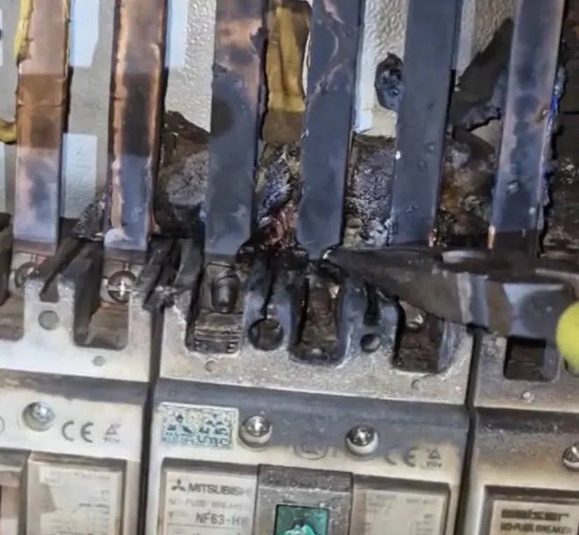 - ネズミが配電盤内に侵入し、内部でショートを発生。