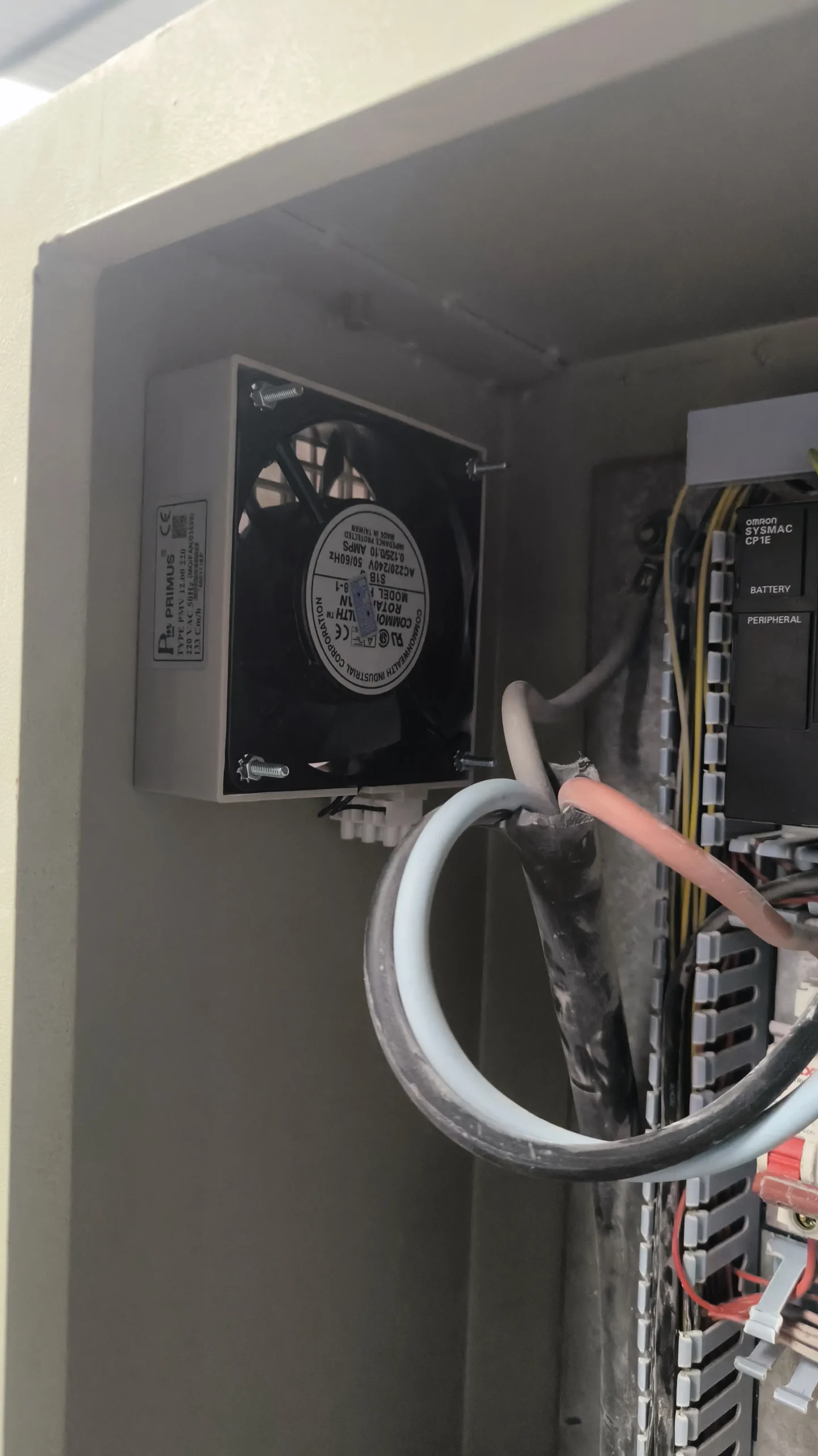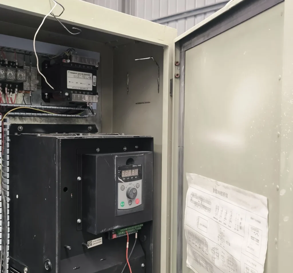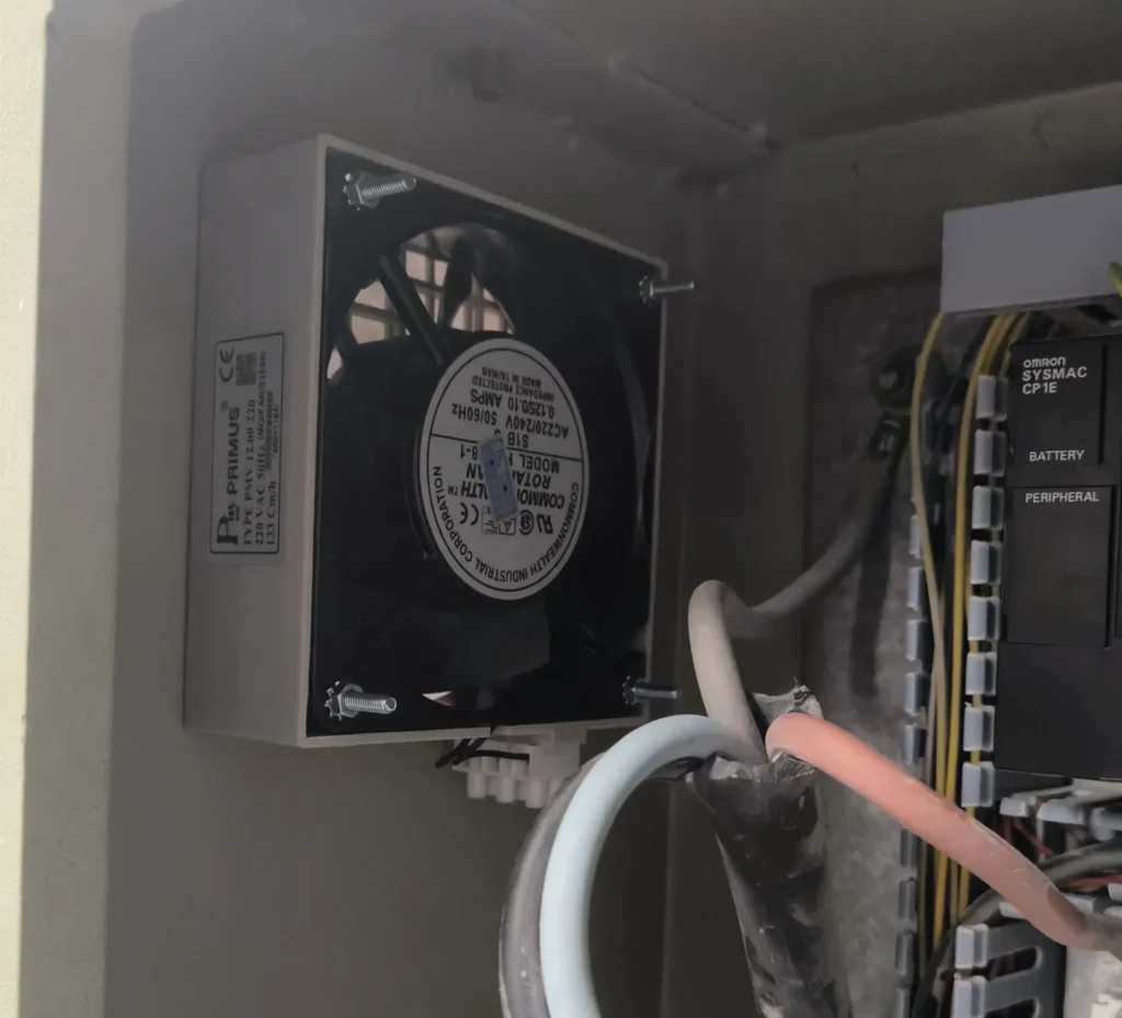- 冷却効率の改善:制御盤に吸排気用の穴を加工し、新たにファンを設置。