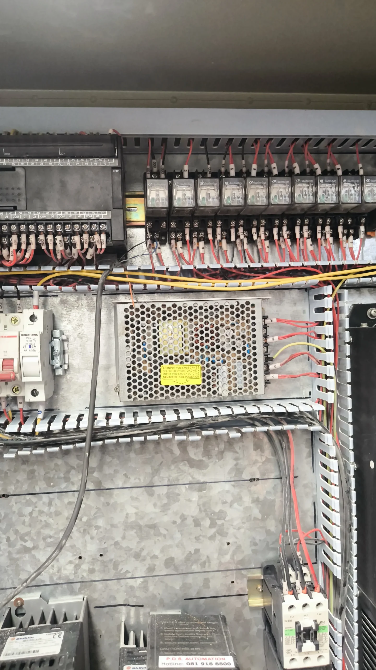 制御盤の清掃、吸排気穴の加工、配線の点検を実施。