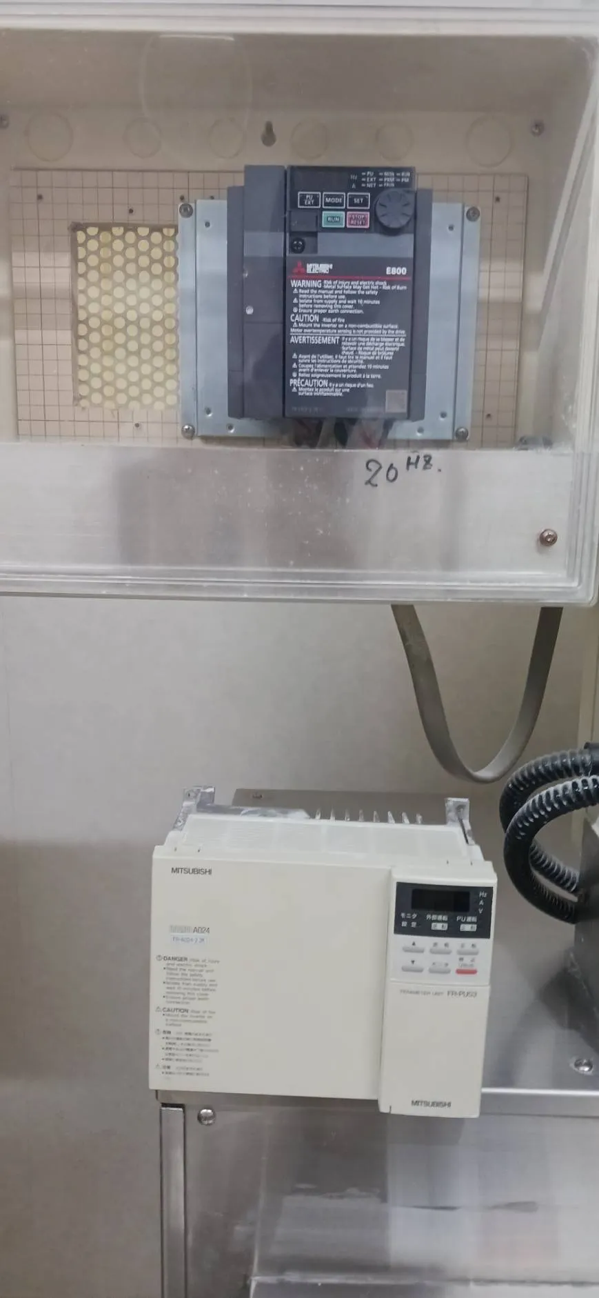 お客様は「壊れる前に交換する」という予防保全の考えをお持ちで、今回もインバーター・スイッチ類などの電気部品を順次交換しています。