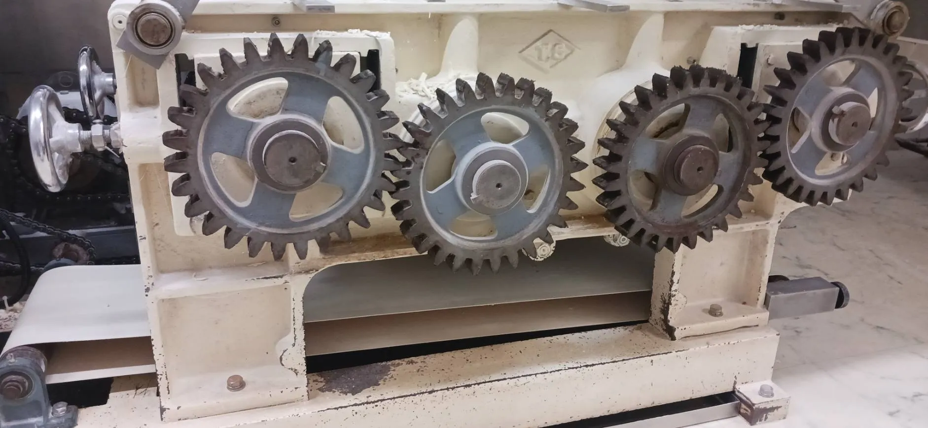 - 機能:ミキサーで練り上げた生地を潰し、伸ばす工程を担う