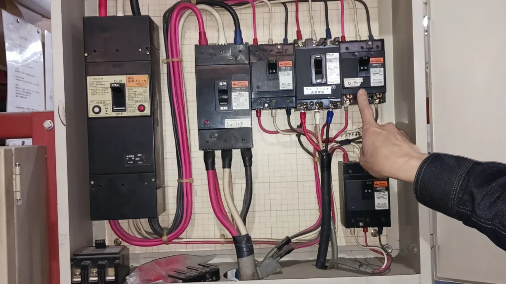 - 分電盤のモーターブレーカーが実際のモーター容量と合っておらず、安全装置として十分に機能していなかった。