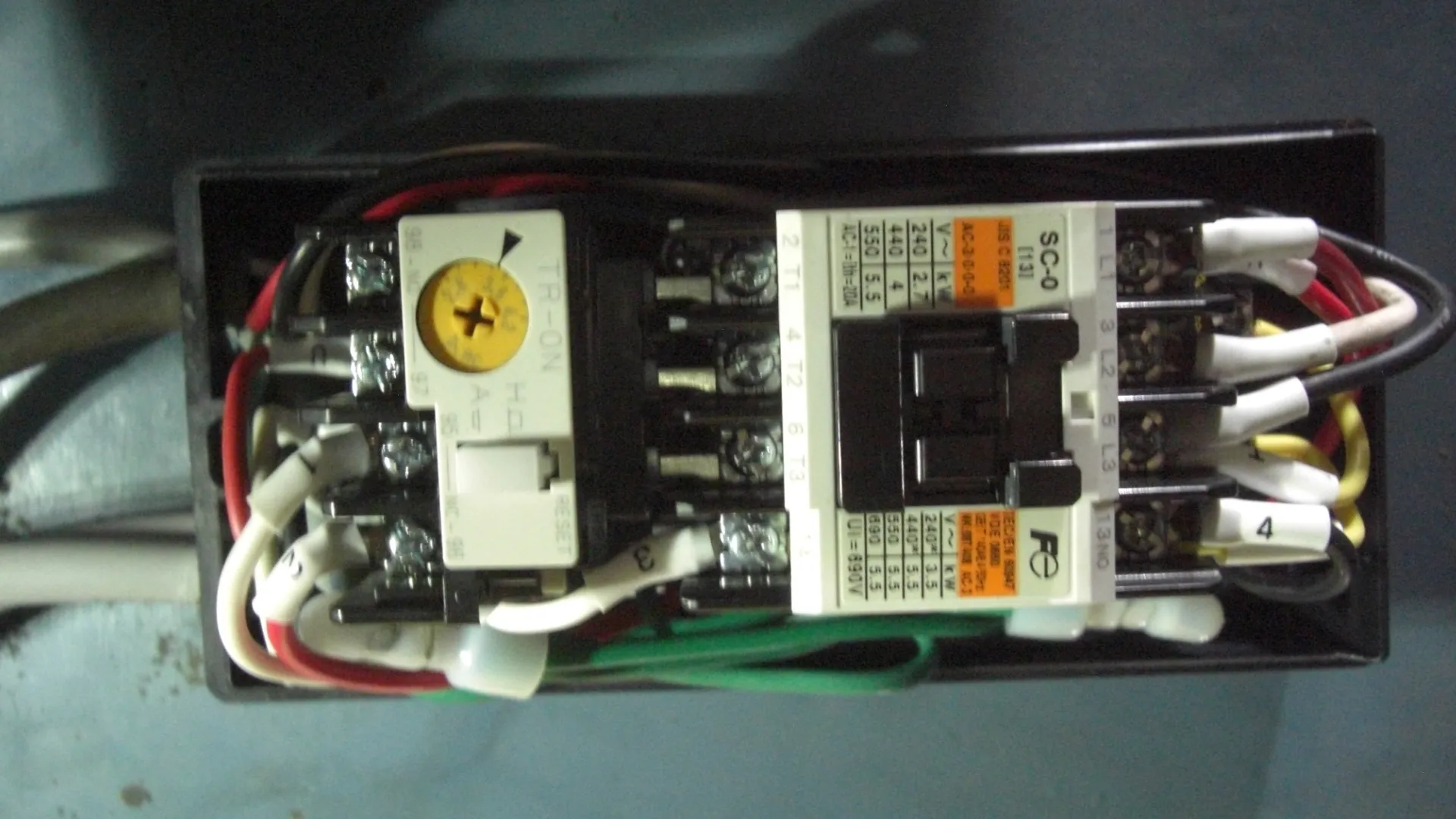 マグネットスイッチにサーマルリレーを付属させ、過負荷時には自動で電源を遮断。